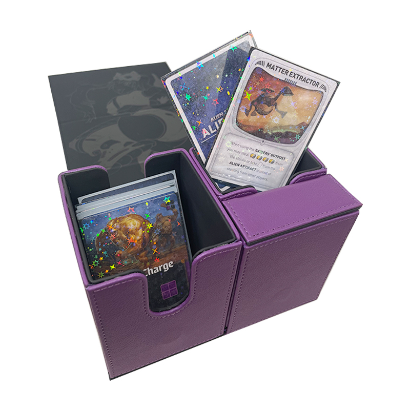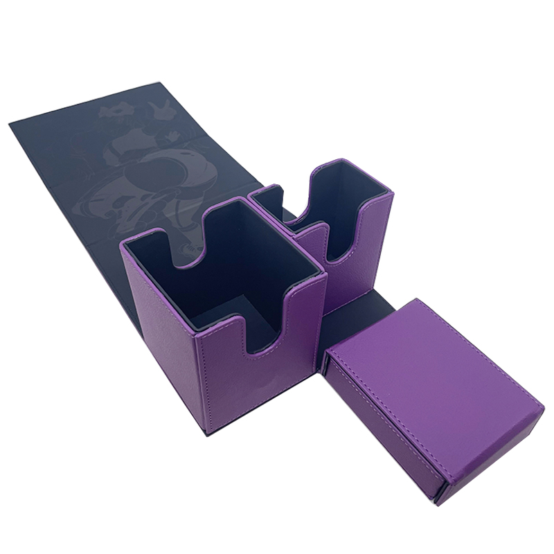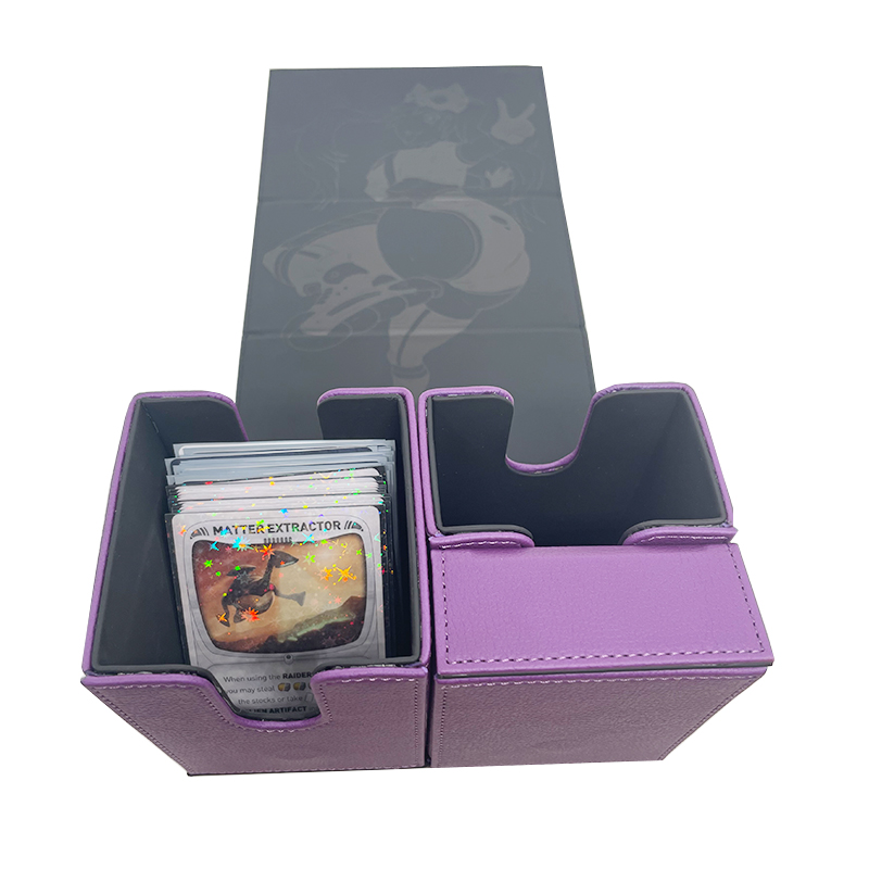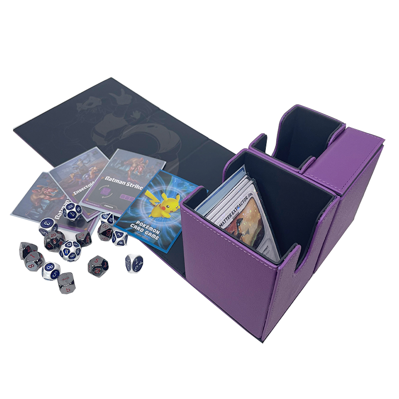 Custom Deck Box For Dice And Board Game Card Deck Box Flip Deck Box For MTG Board Games * Premium leather material - The soft but robust leather material with its premium look and feel makes the Flip Deck Case a luxury suite for your cards. * Durable and rigid box - Super rigid double-layer skin for maximum protection. * Very strong closure - magnets for a precise and robust closure. * PROTECT - With a soft microfiber lining the Deck Box protects your cards from scrapes and dings keeping them in mint condition. * SECURE - High strength magnets keep your deck box closed even when held upside down. No more card spills. * PERFECT DESIGN - The Deck Box is designed to fit a variety of cards. Compatible with Magic: The Gathering, Pokemon, Star Realms, Star Wars X-Wing, Force Of Will, Cardfight Vanguard, WoW, Panini XL & Match Attax Football Cards along with many more.